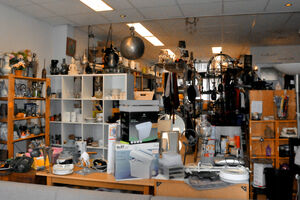 Binnen is het niet heel groot, maar er zijn genoeg spullen om doorheen te snuffelen. Er staan een paar schoenen zo goed als nieuw, compleet met schoenendoos. Kledingrekken met lange wintermantels. De stellingkasten in de winkels staan vol met van alles. Stapels servies, een plank vol oude modelauto’s. Platen, en zelfs wat planten. Van kinderboeken tot de rollator op de stoep: er is voor ieder wat wils.