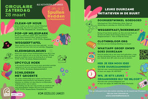 Kom langs bij ons pop-up milieupark en doe mee aan allerlei leuke circulaire activiteiten. Je kunt onder andere schilderen met groente, meedoen aan een kledingruil en spullen delen of meenemen van de doorgeeftafel en meedoen met de Clean-up Hour.