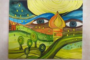 Werk in de stijl van Hundertwasser, begeleid door buurvrouw Mieke.