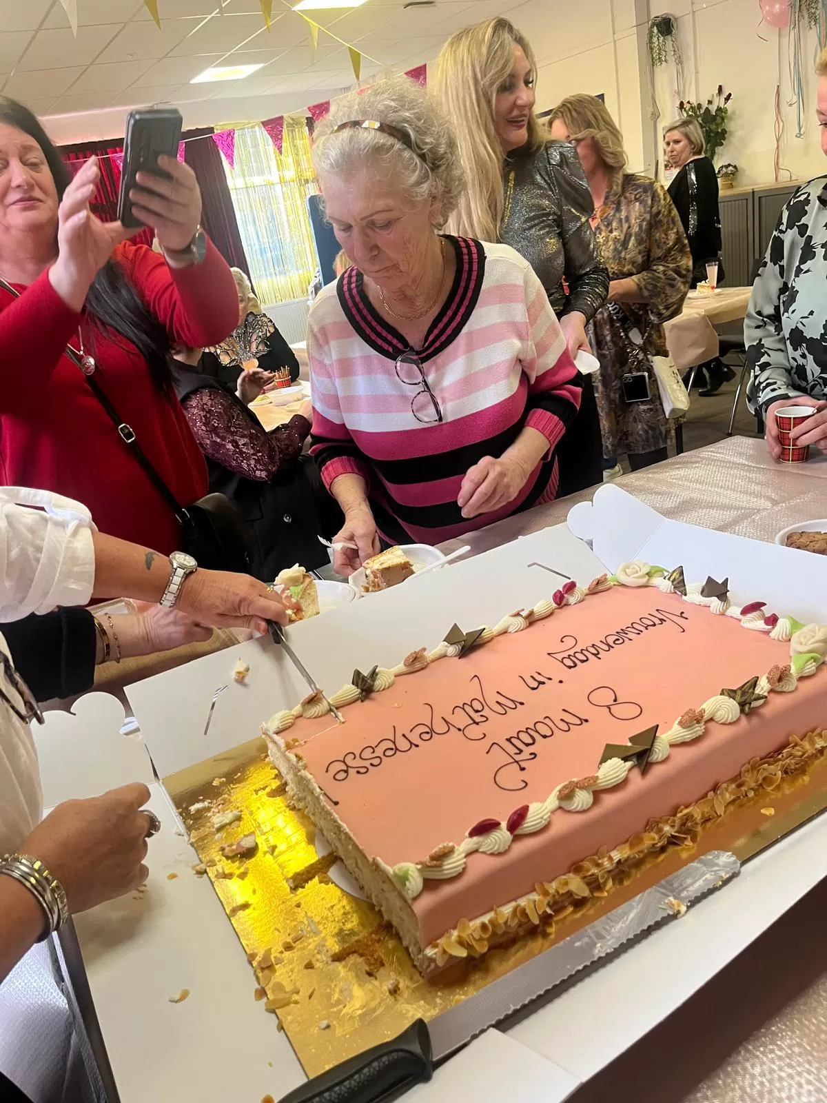 Vanaf 14.00 uur ging de deur open bij het Huis van de Wijk, De Inloop, waar zo'n 45 dames werden ontvangen met een drankje en taart. Er waren allerlei activiteiten voorbereid, van make-up en haar, tot het nemen van polaraid foto's - met pruiken, zonnebrillen en hoedjes -, kaarsen maken en natuurlijk was er muziek.