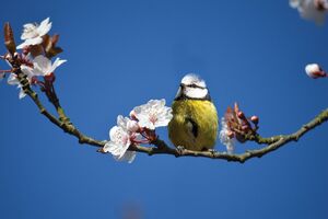 De enige mees die in hoofdzaak blauw en geel is, is de pimpelmees. Let op zijn helblauwe petje. Zijn liedje is een helder, hoog trillend riedeltje. De pimpelmees is een echte acrobaat. Vaak hangt hij ondersteboven aan twijgjes als hij voedsel zoekt. Door zijn kleine formaat en geringe gewicht komt hij waar andere vogels niet kunnen komen.